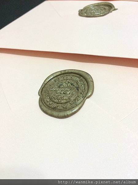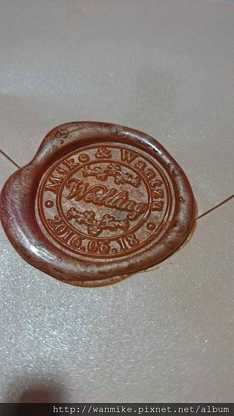 這邊也跟網路上查到的不一樣,網路上說不用壓,不過M主張不壓我們訂製火漆章的字會看不清楚,