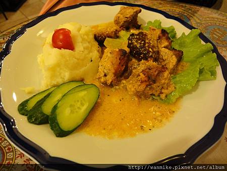 這就是傳說中的俄羅斯沙皇烤肉,柔嫩的烤豬肉搭配上有一點點酸酸的醬汁,頗有俄羅斯風味