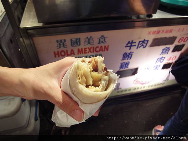 是兩個外國人在賣的異國美食捲,點了鮪魚的吧?