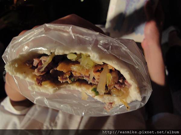 第五家,其實沒有要吃了...但是宇彣聽錯我在說什麼,所以跑去買了烤鴨夾餅哈,結果太撐了!> <