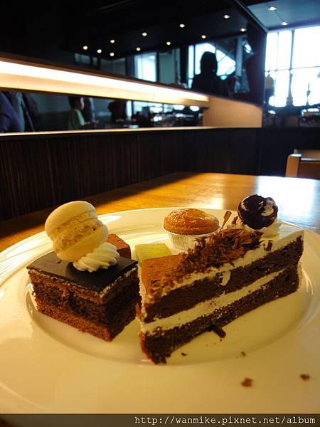 左邊蛋糕上面的小巧馬卡龍好吃!脆脆甜甜的~