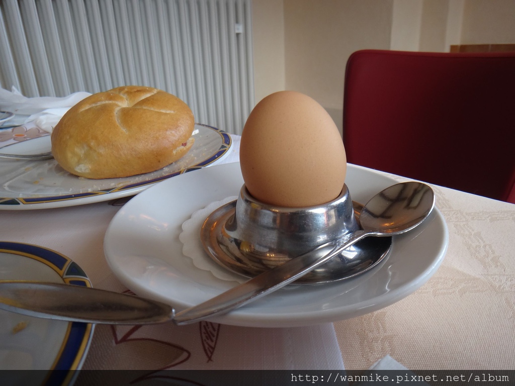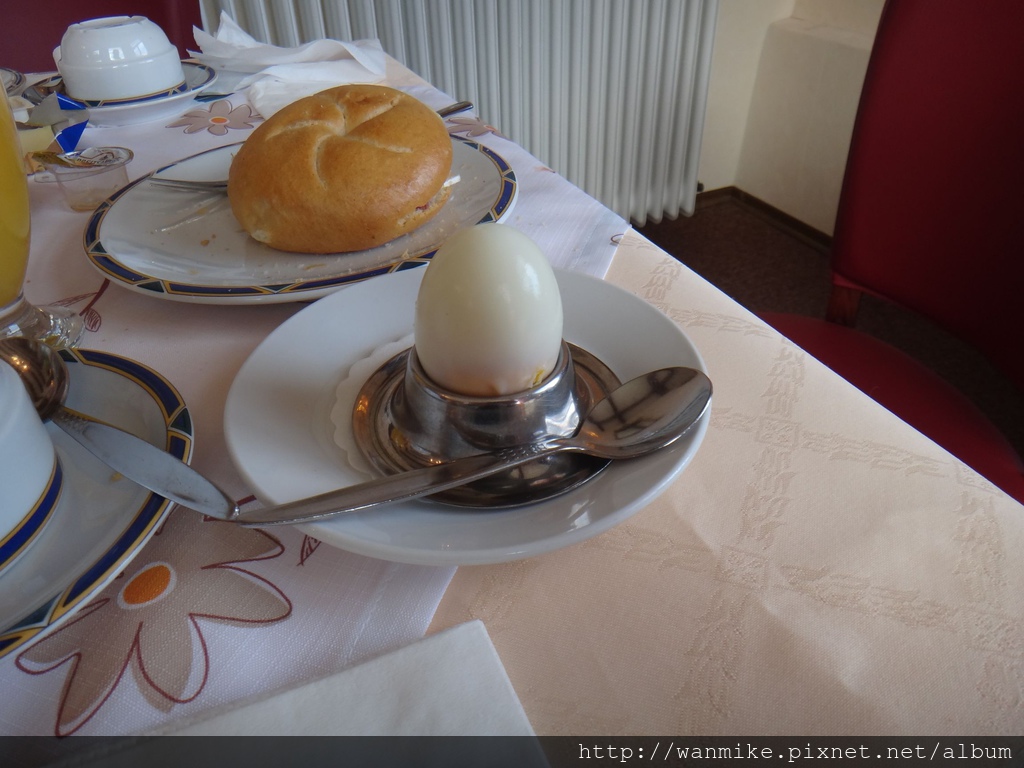 最後一天 在德國的民宿吃早餐 水煮蛋是常見的餐點之一(剝殻前)