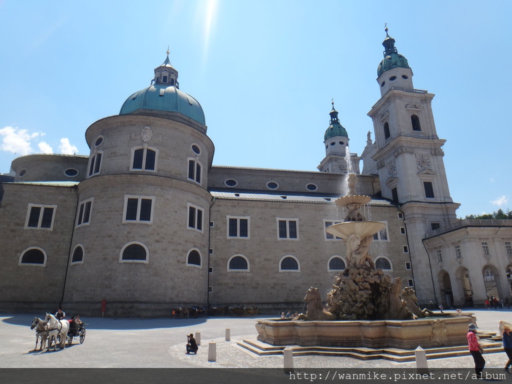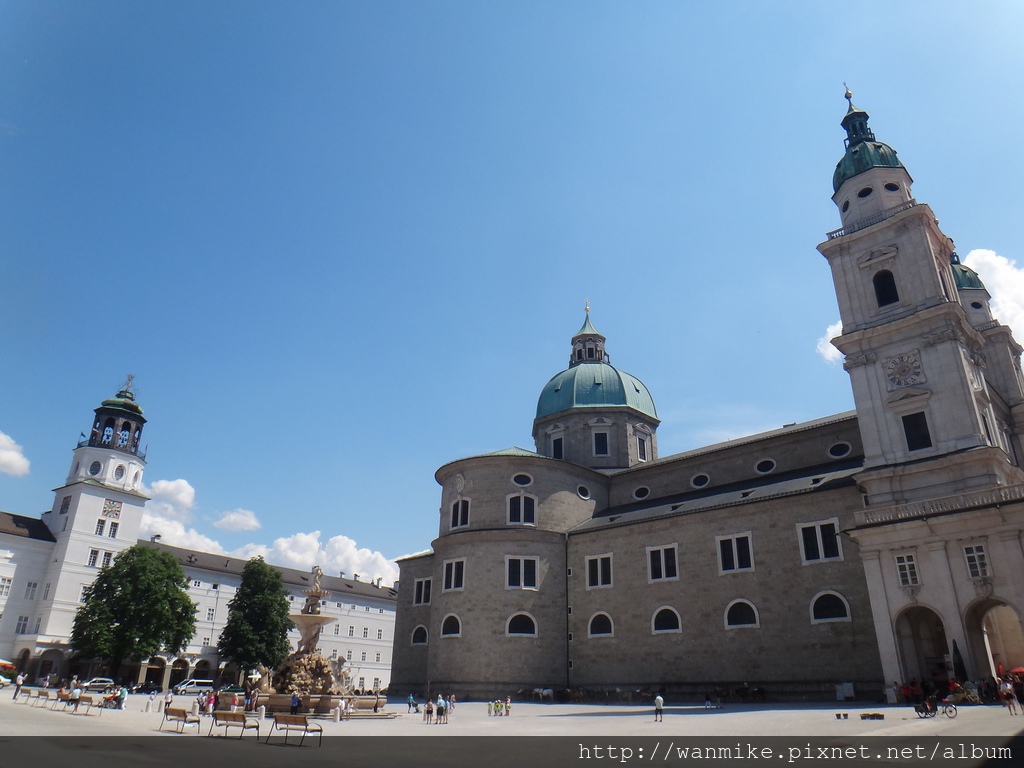 Mozart platz算是個進入Salzburg市區 周圍有Dom(圓頂大教堂)、Residenz、