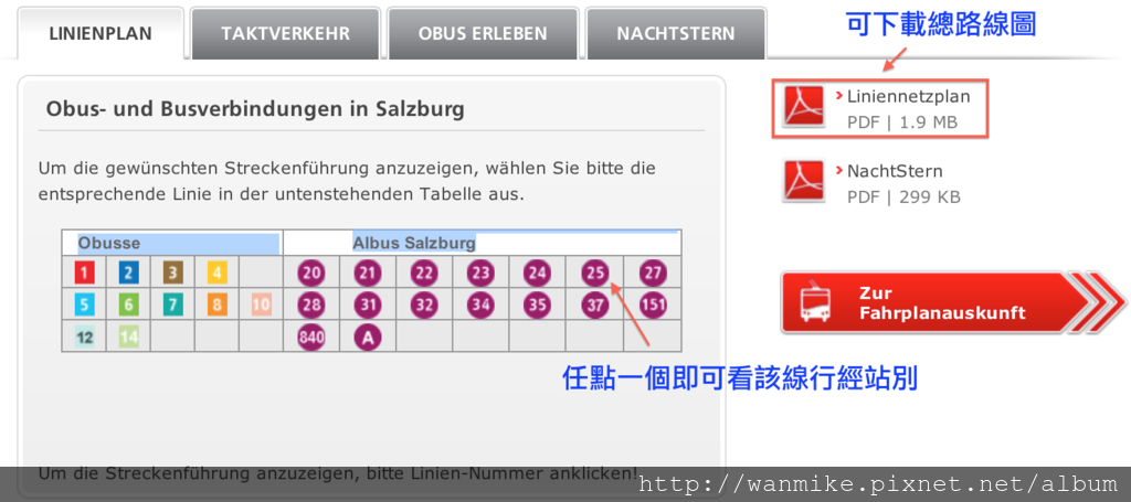 點右邊那個liniennetzplan(路線圖)可以下載整個Salzburg周邊的路線圖