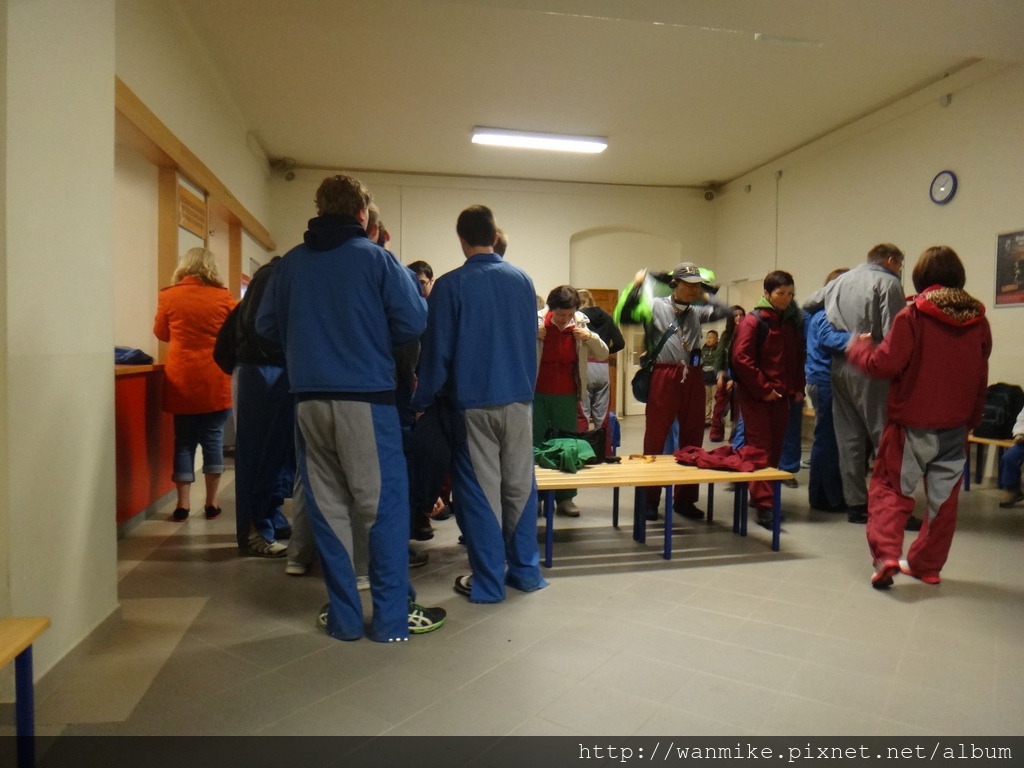 進入鹽礦前需要先換裝 衣服不同顏色表示不同的Size