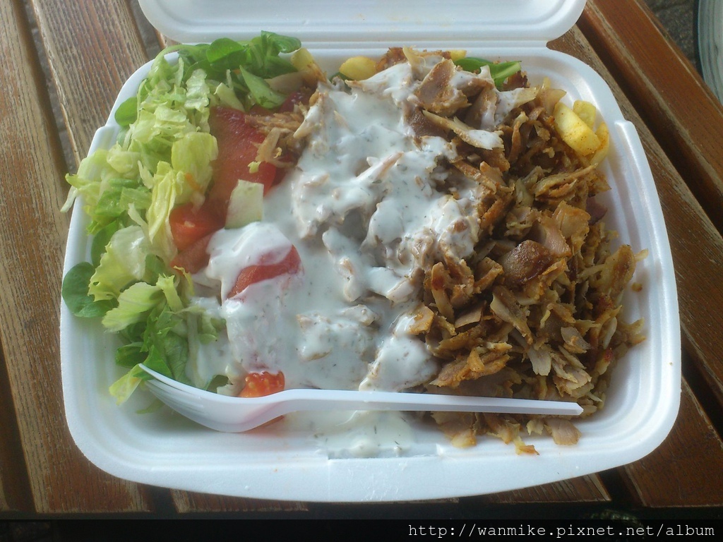 晚餐:土耳其烤肉+蔬菜+薯條(被滿滿的肉壓在下面了,很好吃~)