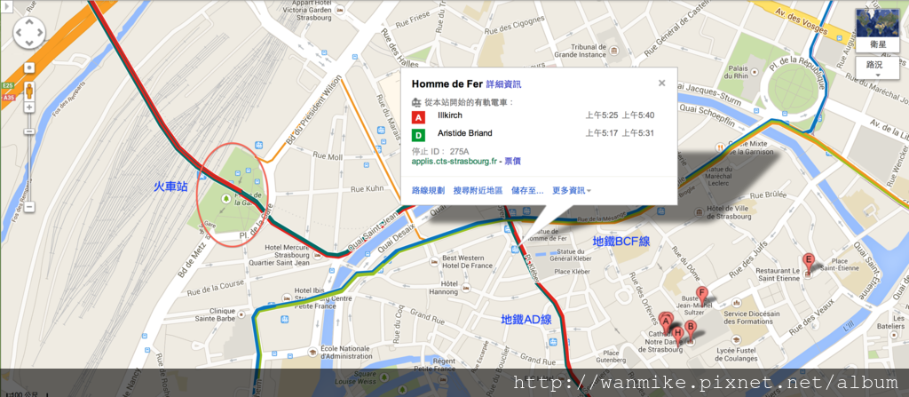 從火車站搭A線或D線 並在Langstross-Grand`Rue站下車(在Homme der Far站下也行 不過要走比較遠的路)