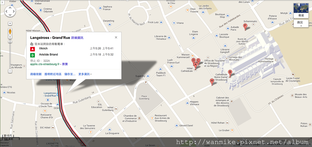 在Langstross-Grand`Rue站下車後沿著地圖走便會到大教堂(事實上 那教堂很高 只要往高高的教堂那個方向走就找得到了)